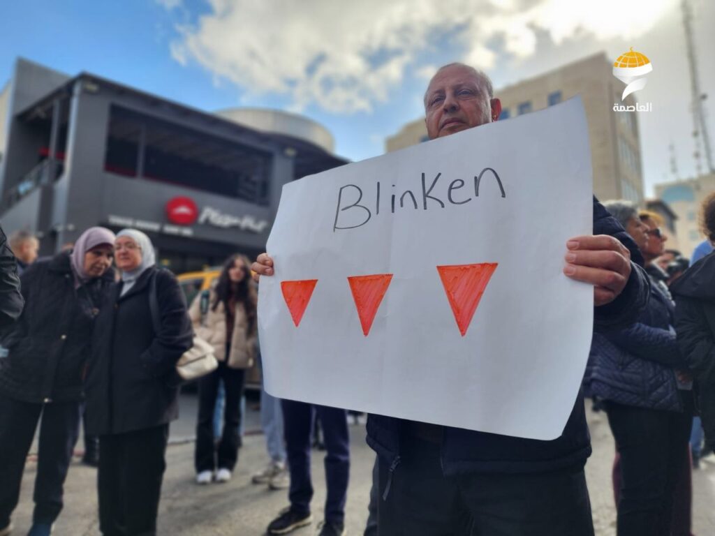 Blinken’ın Ramallah’a gelişini protesto etmek isteyen çok sayıda Filistinli ise kent merkezindeki El-Minare Meydanı’nda toplandı.