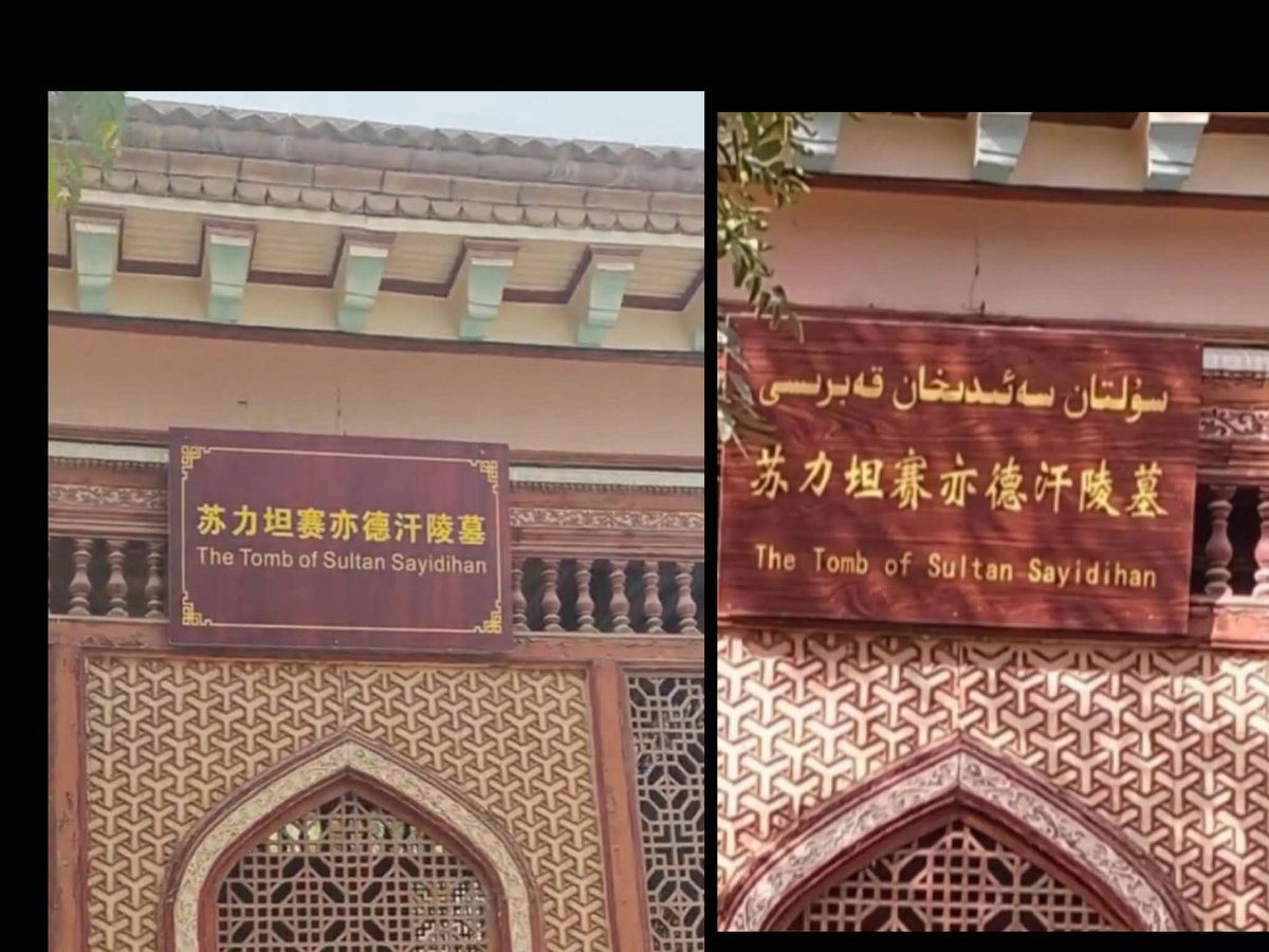 Uygur Times tarafından paylaşılan bilgilere göre, Doğu Türkistan’daki tarihi bölgelerden biri olan Yarkent Eski Şehri’nde bulunan Sultan Said Han Türbesi çevresindeki tabelalarda daha önce yer alan Uygurca yazıların kaldırıldığı görüldü. Yeni düzenlemelerde tabelalarda Çince ifadelerin öne çıkarıldığı, İngilizceye ise sınırlı ölçüde yer verildiği dikkat çekti.