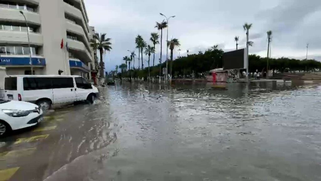 Su seviyesinin araçların tekerlek hizasına geldiği bölgede, trafik yoğunluğu oluştu. Sürücüler yolda ilerlemekte güçlük çekerken trafik polisi araçları alternatif güzergahlara yönlendiriyor.
