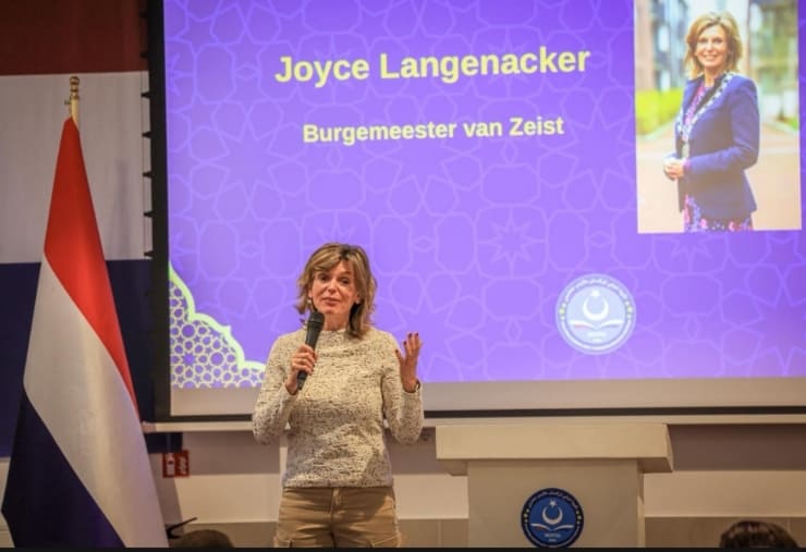 Bu etkinliğin en parlak noktalarından biri, Zeist Belediye Başkanı Sayın Joyce Langenacker hanımefendinin biz Uygurlarla bir arada olmasıydı. Sayın Langenacker, her yıl düzenlenen “Uygur Yemek Panayırı”nı düzenli olarak ziyaret edip bizi desteklemiş olsa da, derneğin iftar etkinliğine ilk kez katılarak bir konuşma yaptı. Bu durum, yerel yönetimin Uygur halkına olan saygısını ve samimiyetini bir kez daha kanıtladı. Bu destek, biz Uygurların Hollanda toplumundaki yerini daha da sağlamlaştırmaktadır.