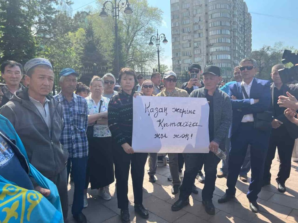 1 Mayıs öğleden sonra, yaklaşık 20 kişi Central Park yakınlarında toplandı. Bazıları ellerinde “Kazak zherine Kytaiga zhol zhok” (“Kazak topraklarında Çin’e giden yol yok”) yazılı bir poster taşıdı. Diğerleri, Ocak olaylarıyla ilgili adil bir soruşturma talep etti.