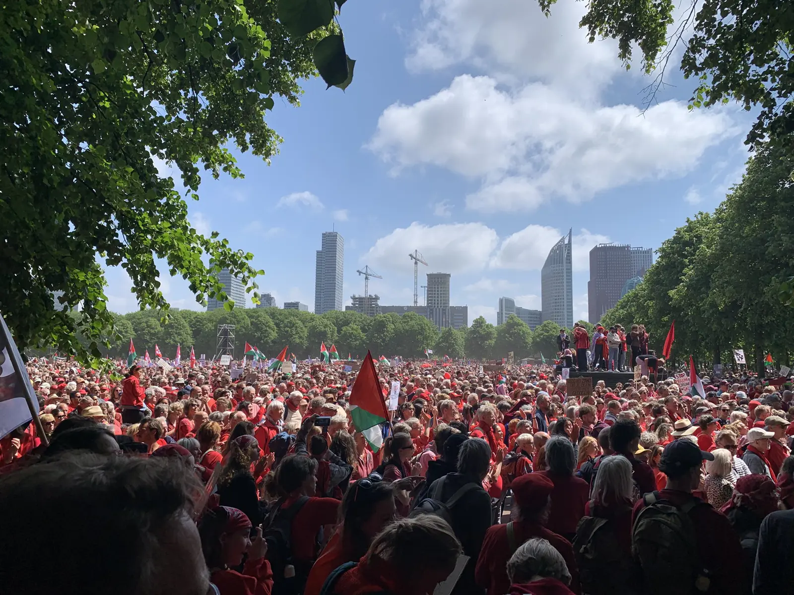 Protestoyu koordine eden Oxfam Novib, Pazar günü yaptığı açıklamada yürüyüşe yaklaşık 100.000 kişinin katıldığını ve bunların çoğunun işgalci israil'in tıbbi malzeme, gıda ve yakıt girişini engellediği Gazze ablukasına karşı "kırmızı çizgi" çizmek istediklerini göstermek için kırmızı giysiler giydiğini söyledi.