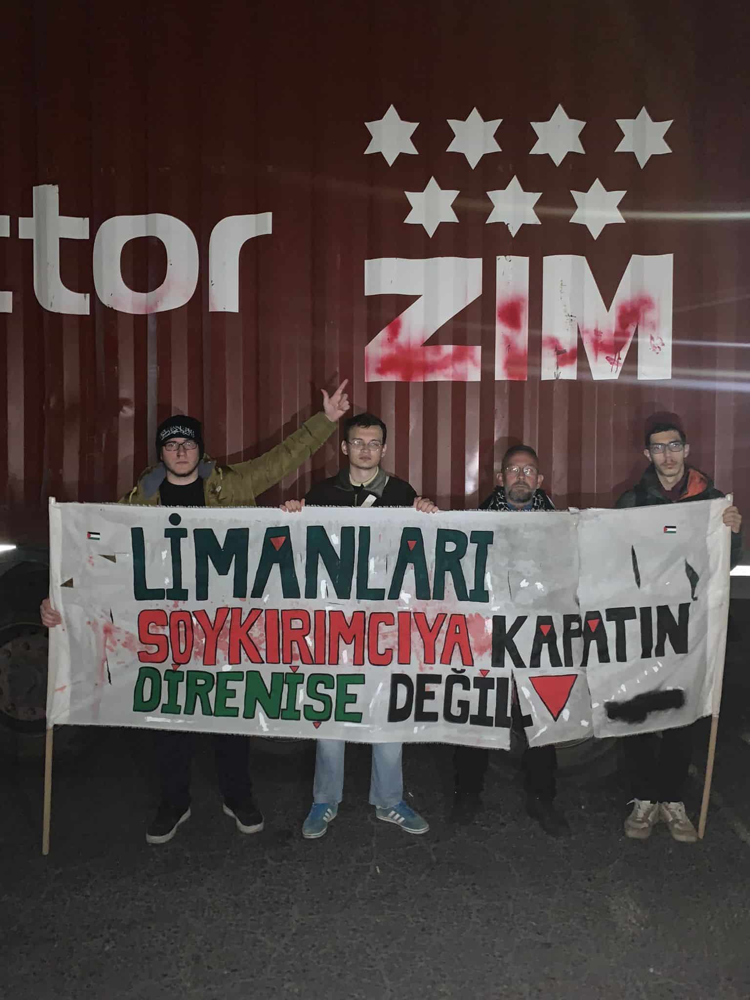 Filistin destekçileri İstanbul’da bulunan Ambarlı Limanı’nda bulunan işgalci israil’le ticaret yapan firmayı engellemek için liman yolunu kapattı.