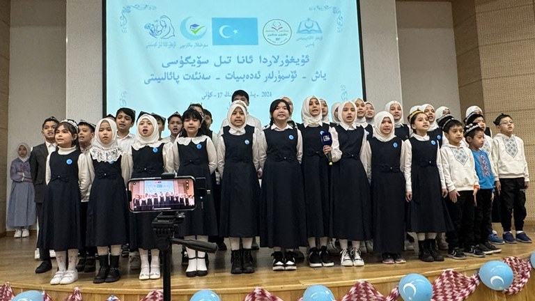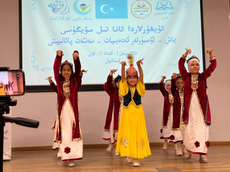 Bu etkinlikte Uygur kız ve erkek çocukları Uygur dilinde çeşitli gösteriler yaparak Uygur halkının ana dilini ve kültürünü seven, koruyan, yok olmasına direnen bir millet olduğunu gösterdi.