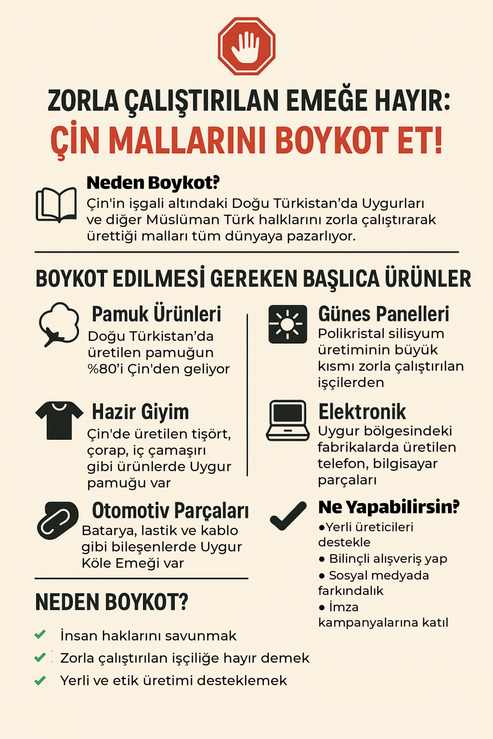 Çin'in işgali altındaki Doğu Türkistan’da Uygurları ve diğer Müslüman Türk halklarını zorla çalıştırarak ürettiği malları tüm dünyaya pazarlıyor.